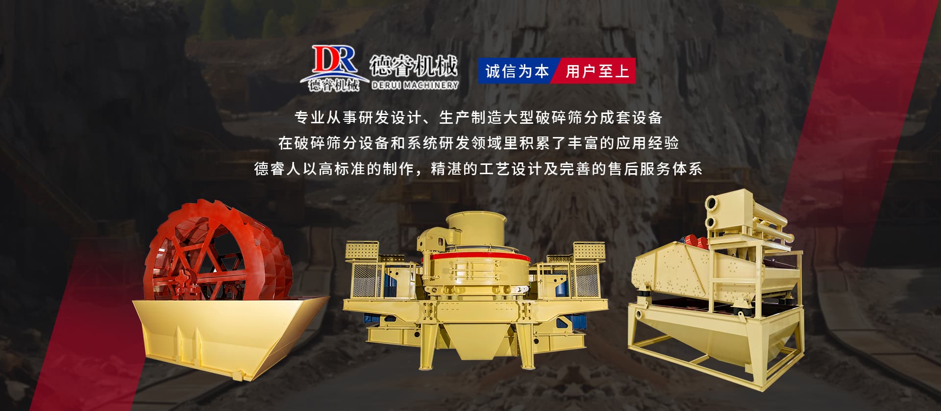 “誠信為本,用戶至上”德睿人以高標(biāo)準(zhǔn)的制作,精湛的工藝設(shè)計及完善的售后服務(wù)體系在破碎篩分設(shè)備和系統(tǒng)研發(fā)領(lǐng)域里積累了豐富的應(yīng)用經(jīng)驗。借助在破碎行業(yè)的豐富經(jīng)驗,公司可向客戶提供碎石制砂生產(chǎn)線設(shè)計、安裝、調(diào)試等交鑰匙工程,同時承接破碎系統(tǒng)的爆破、裝運、破碎等生產(chǎn)運行總承包。